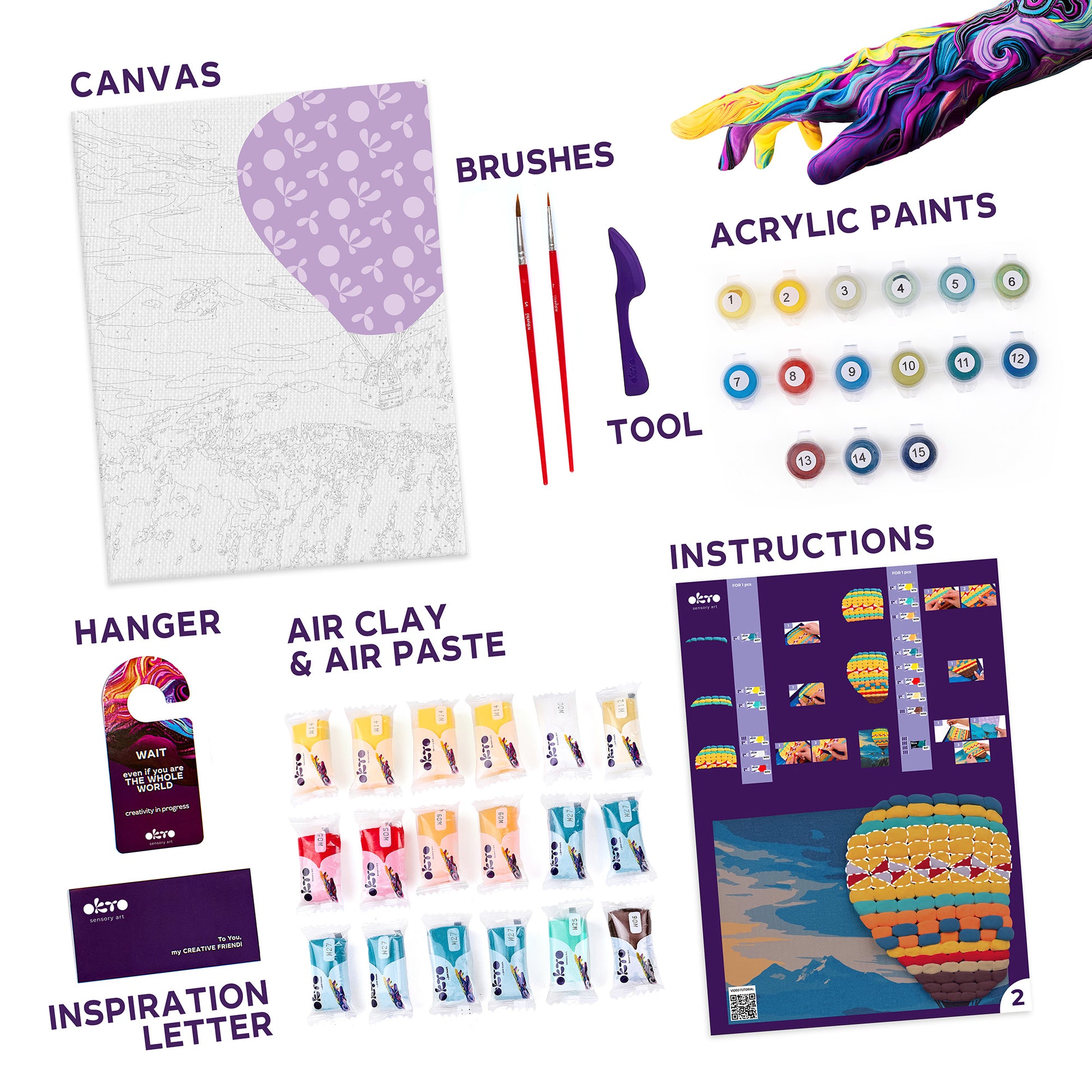 OKTO Air-Dry Clay 3D Painting Kit – Hot Air Balloon (11.8 x 15.7 in)