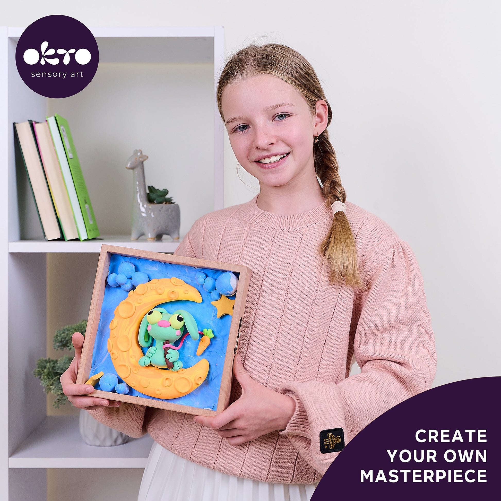 OKTO Little Worlds — Bunny on the Moon — Foam Air‑Dry Clay Wooden Art Kit (~8.3″ Square) — Ages 8+