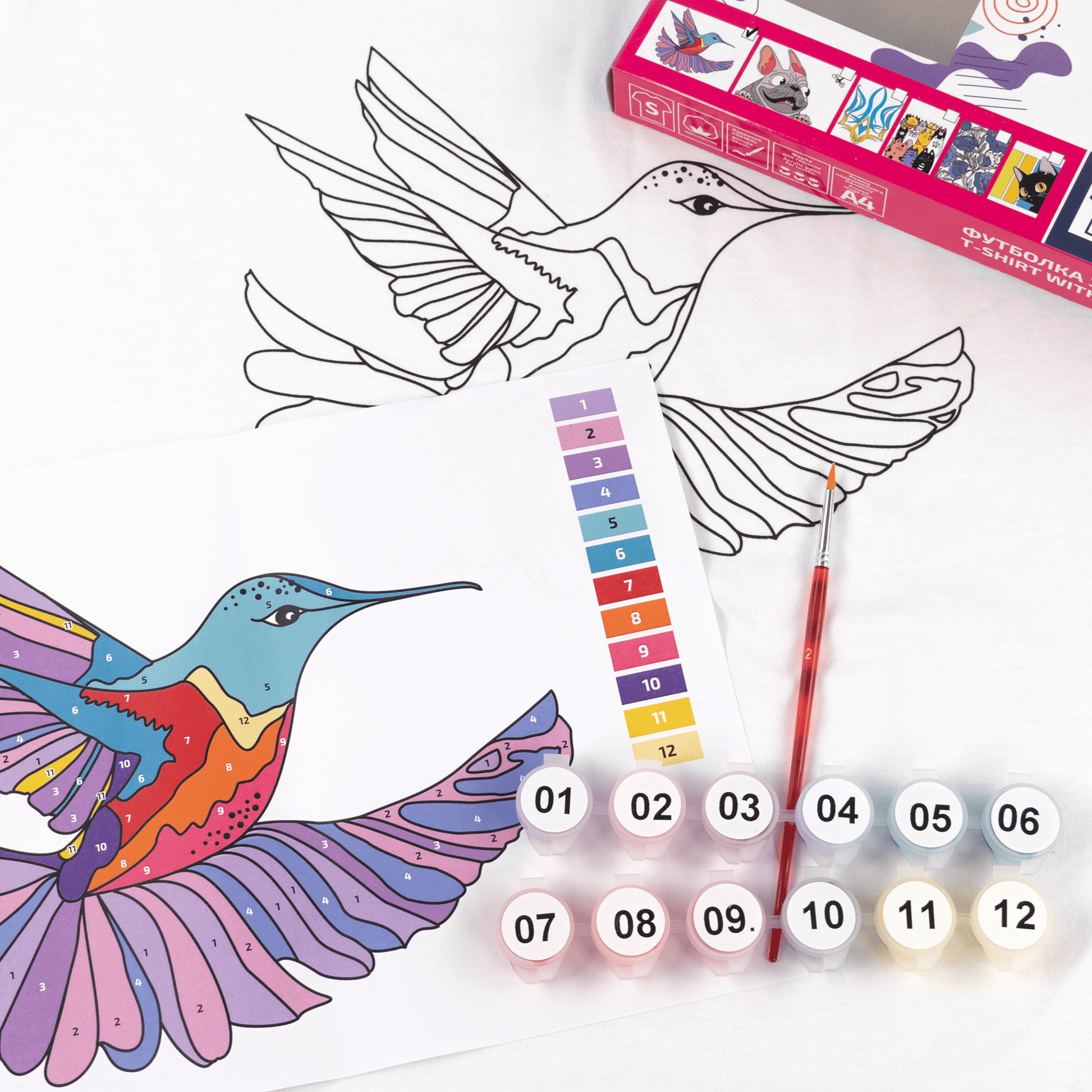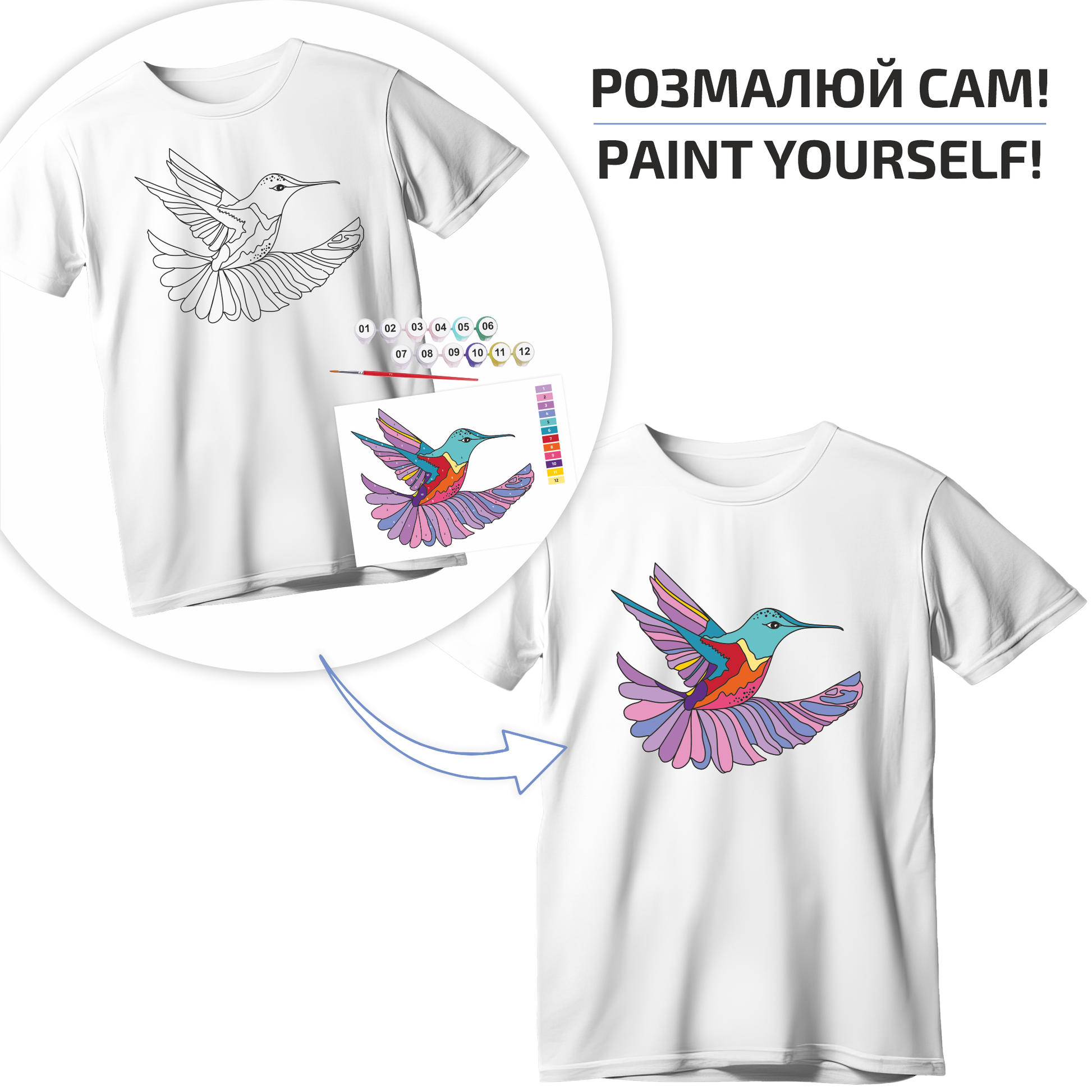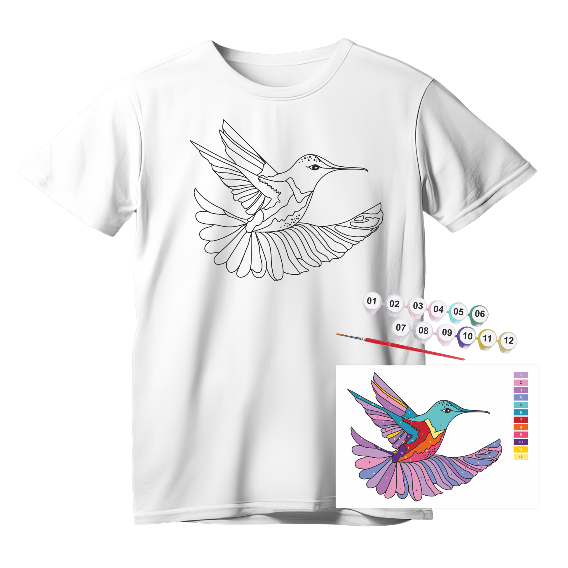 Create, wear, and share your art with the Set: T-Shirt Painting "Hummingbird" by ROSA Talent. Order yours today and start your journey into fabric painting!